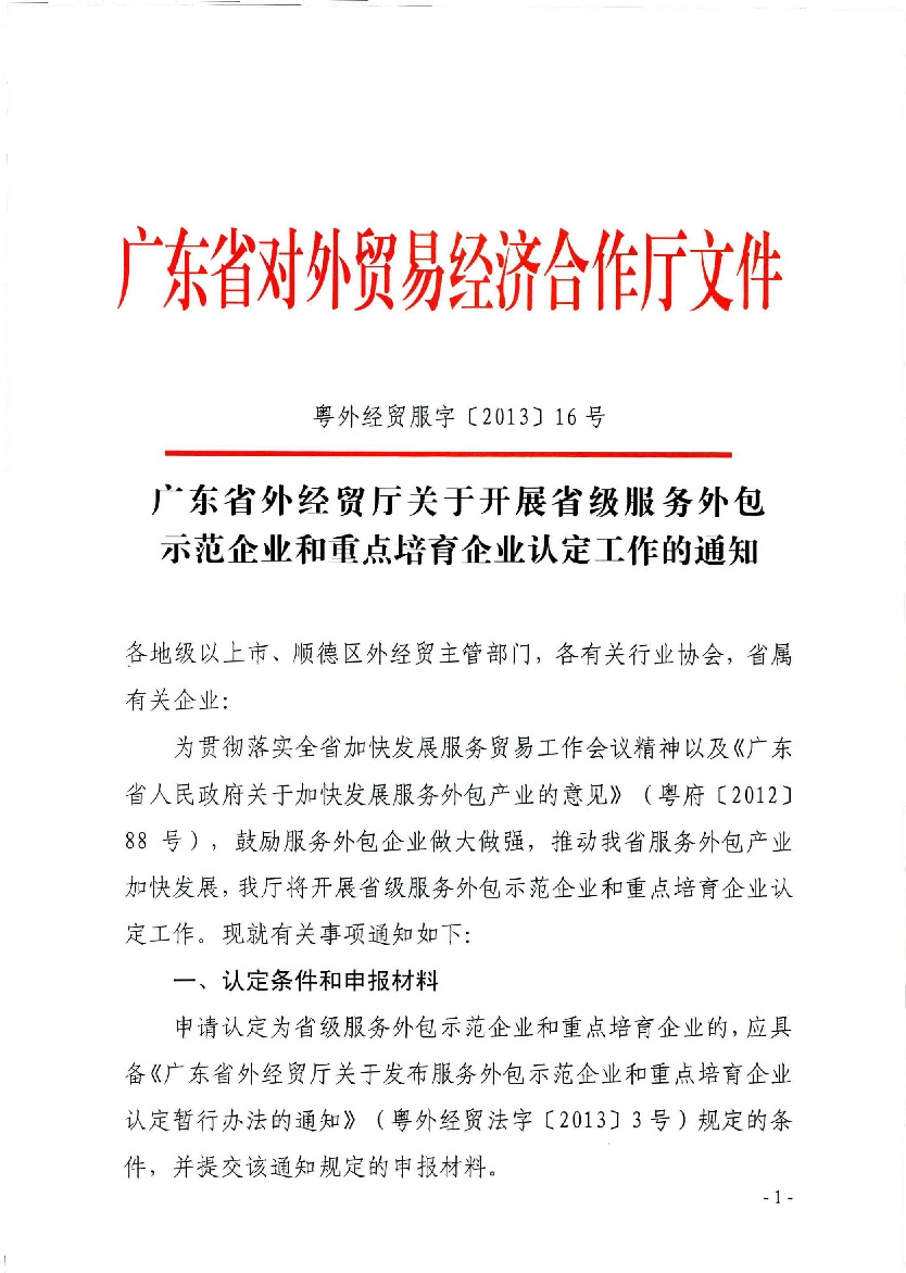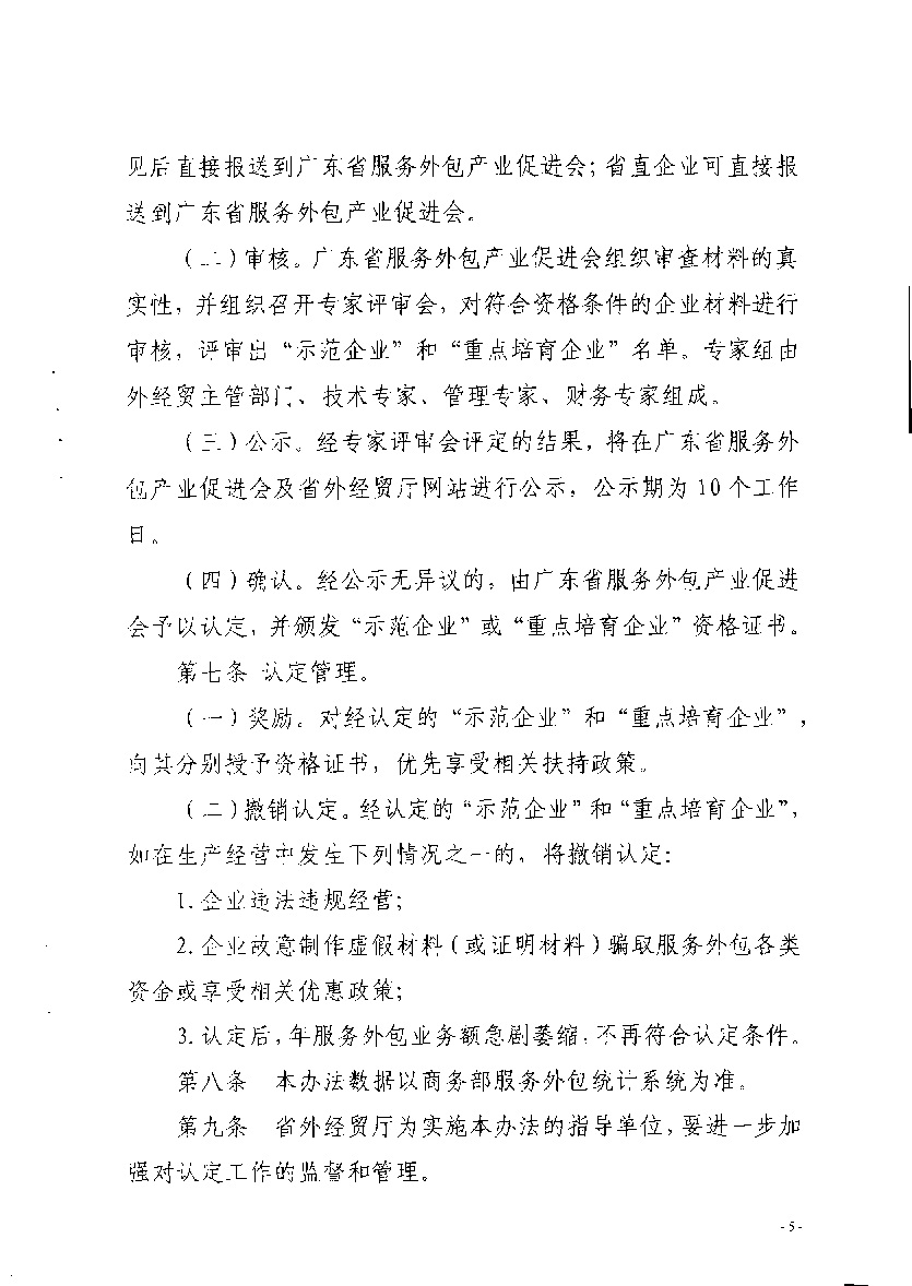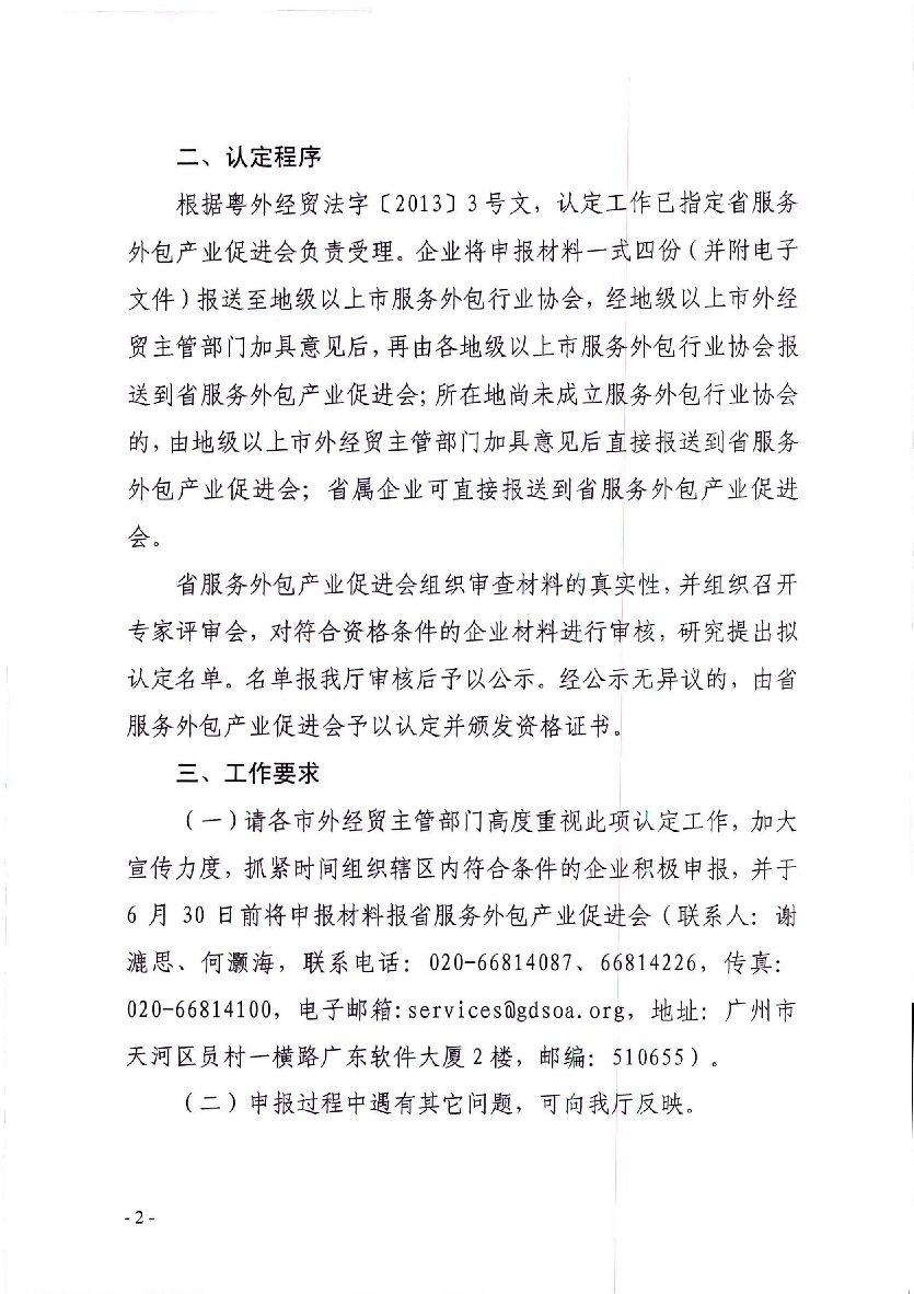 广东省外经贸厅关于开展省级服务外包示范企业和重点培育企业认定工作的通知
