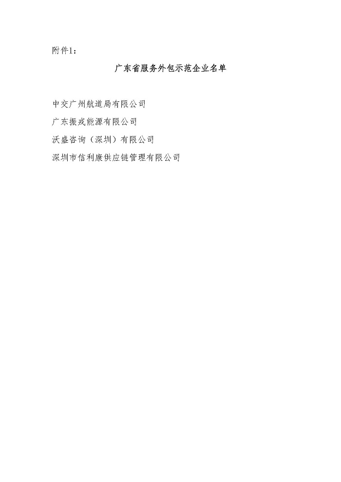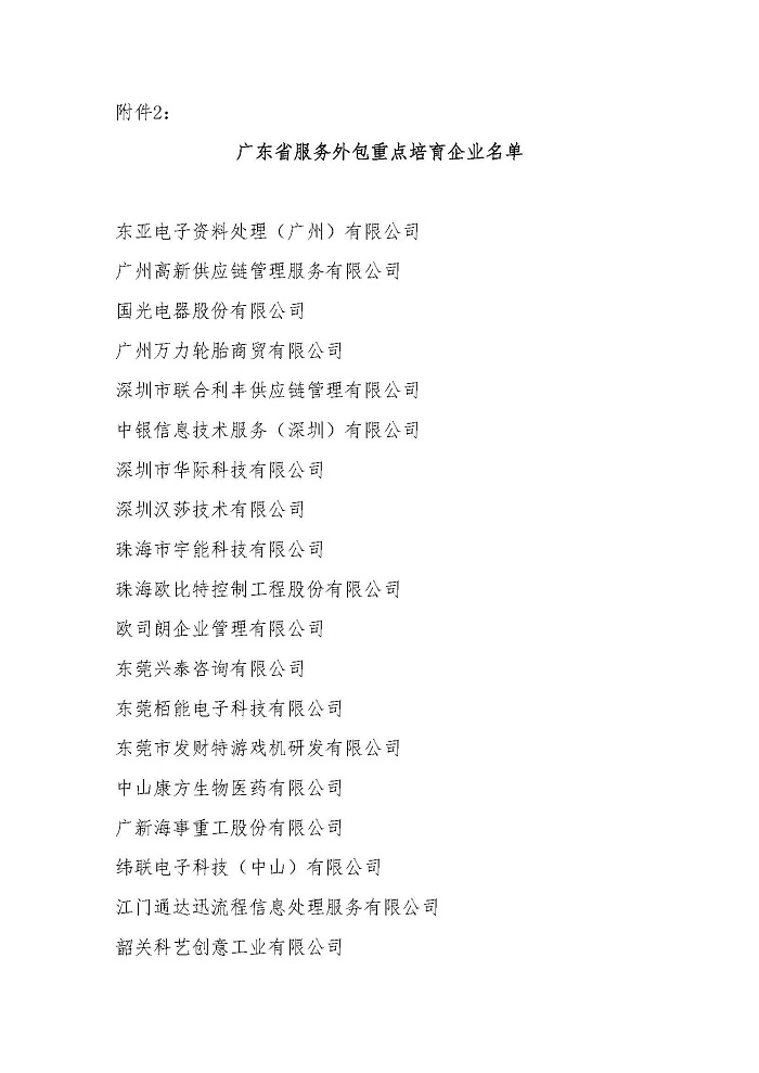 关于公布2014年广东省服务外包示范企业和重点培育企业名单的通知