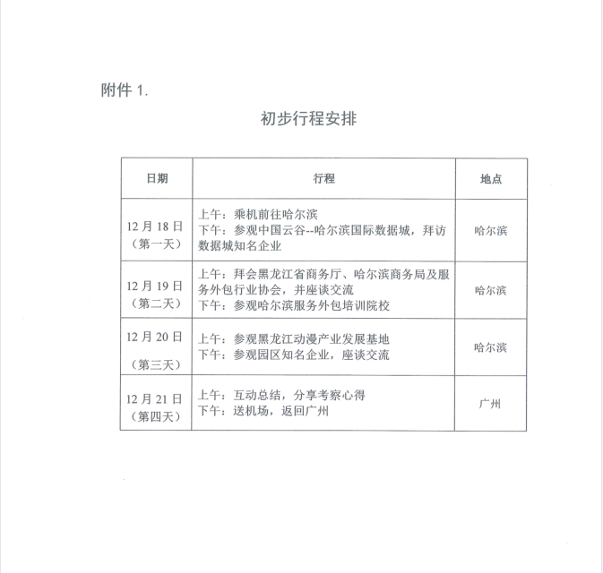 关于组织赴哈尔滨开展服务贸易与服务外包考察交流活动的通知