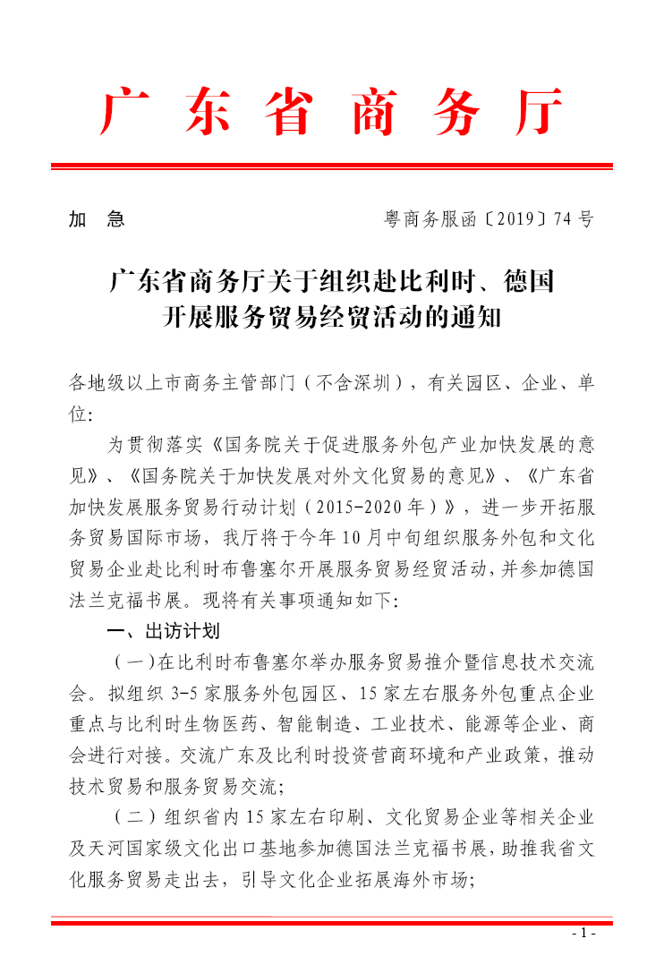 转发:广东省商务厅关于组织赴比利时、德国开展服务贸易经贸活动的通知