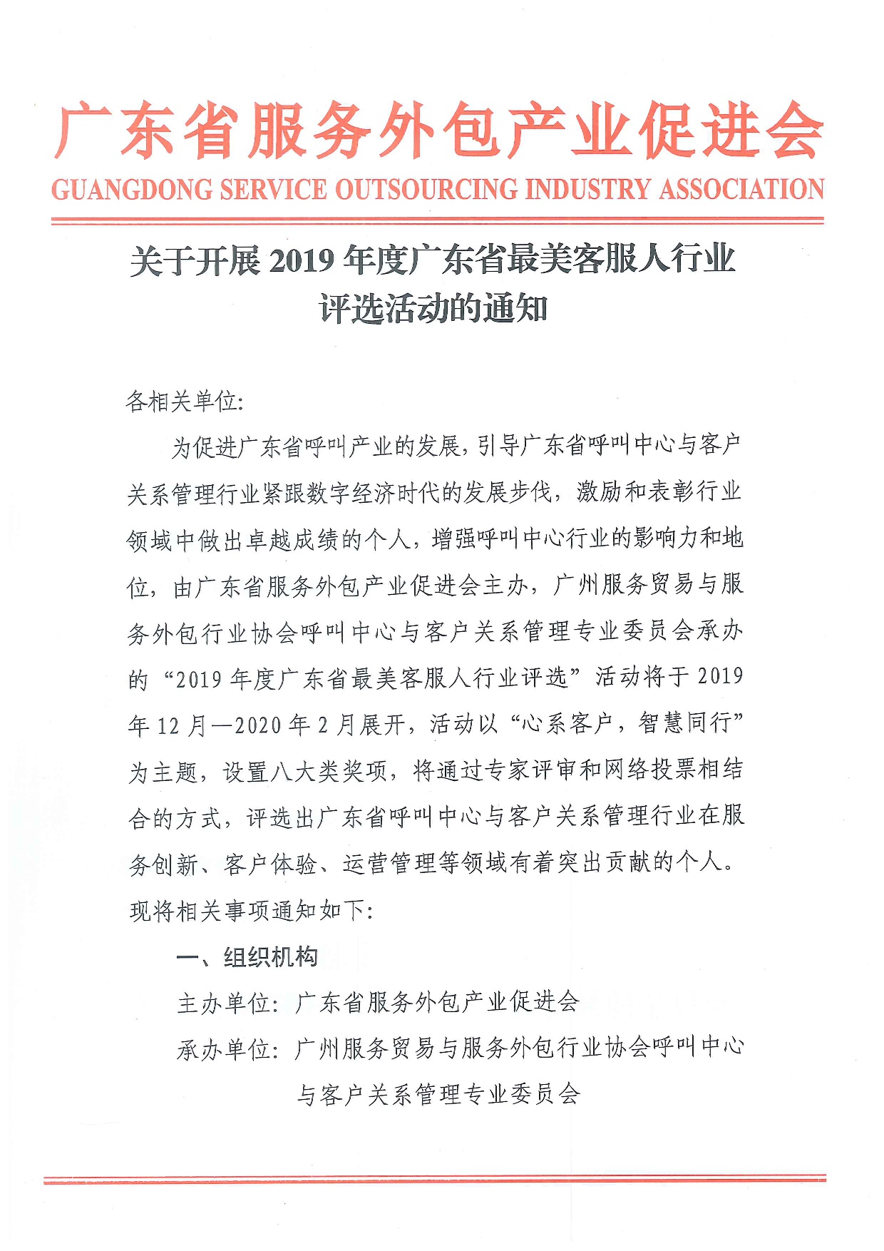 关于开展2019年度广东省最美客服人行业评选活动的通知