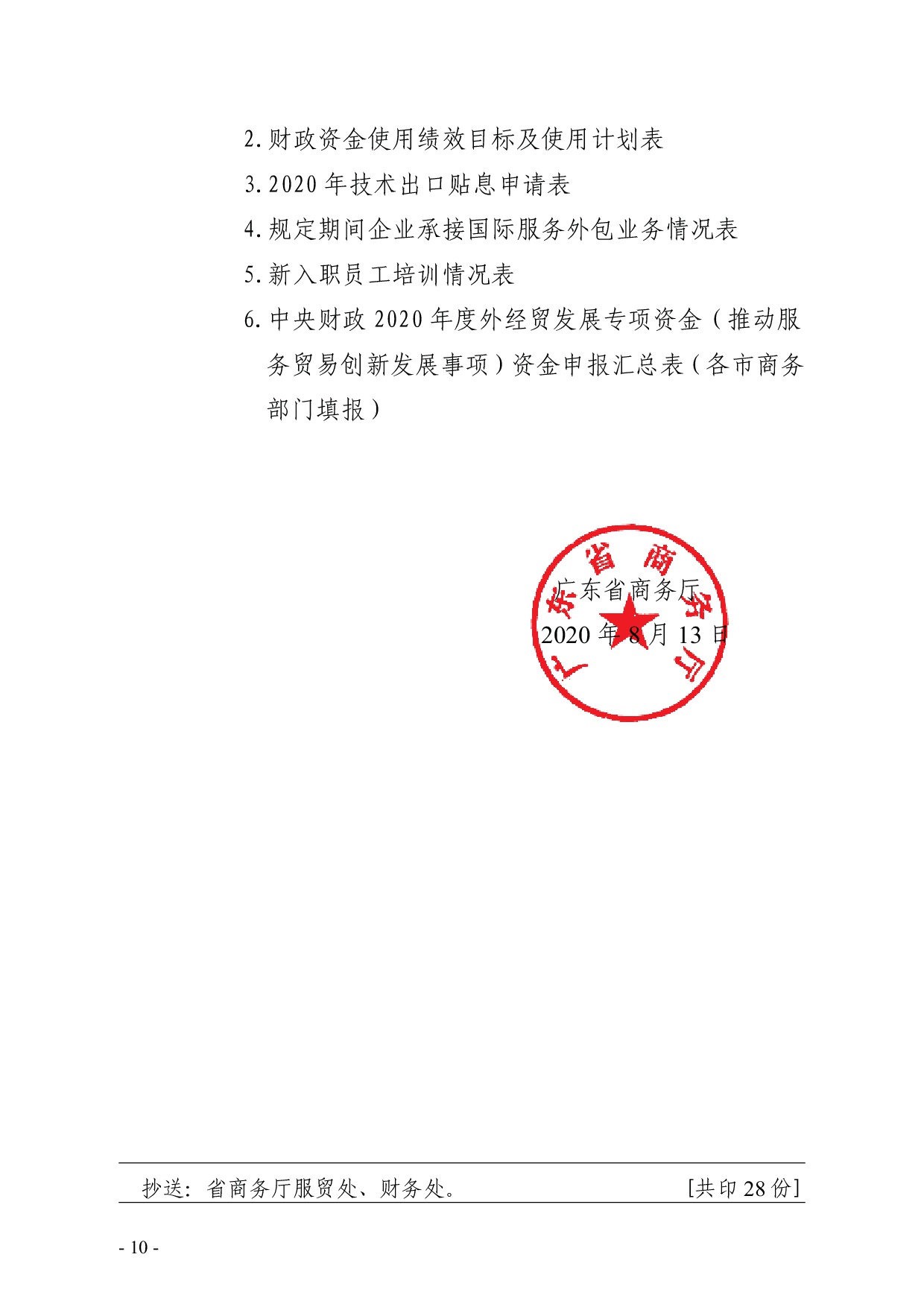 转发 广东省商务厅关于印发中央财政2020年度外经贸发展专项资金(推动服务贸易创新发展事项)第二批项目库申报指南的通知