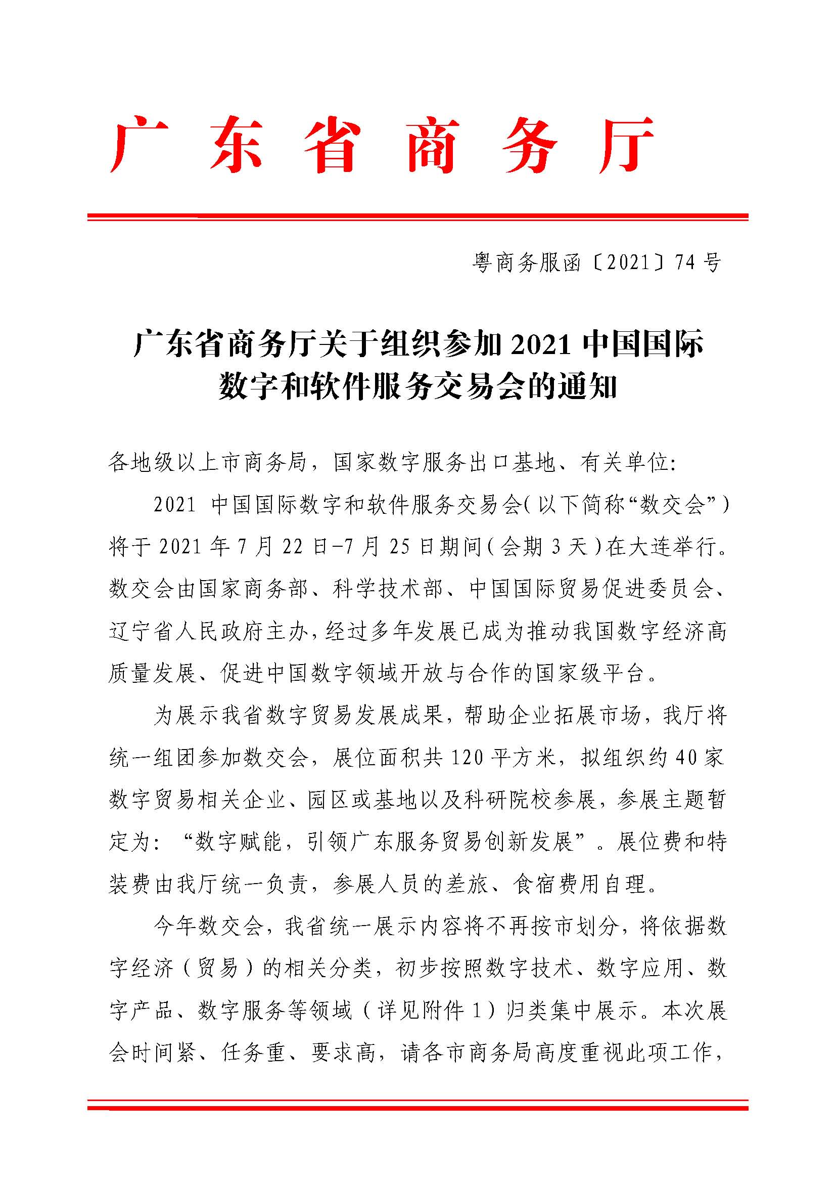 【转发】广东省商务厅关于组织参加2021中国国际数字和软件服务交易会的通知