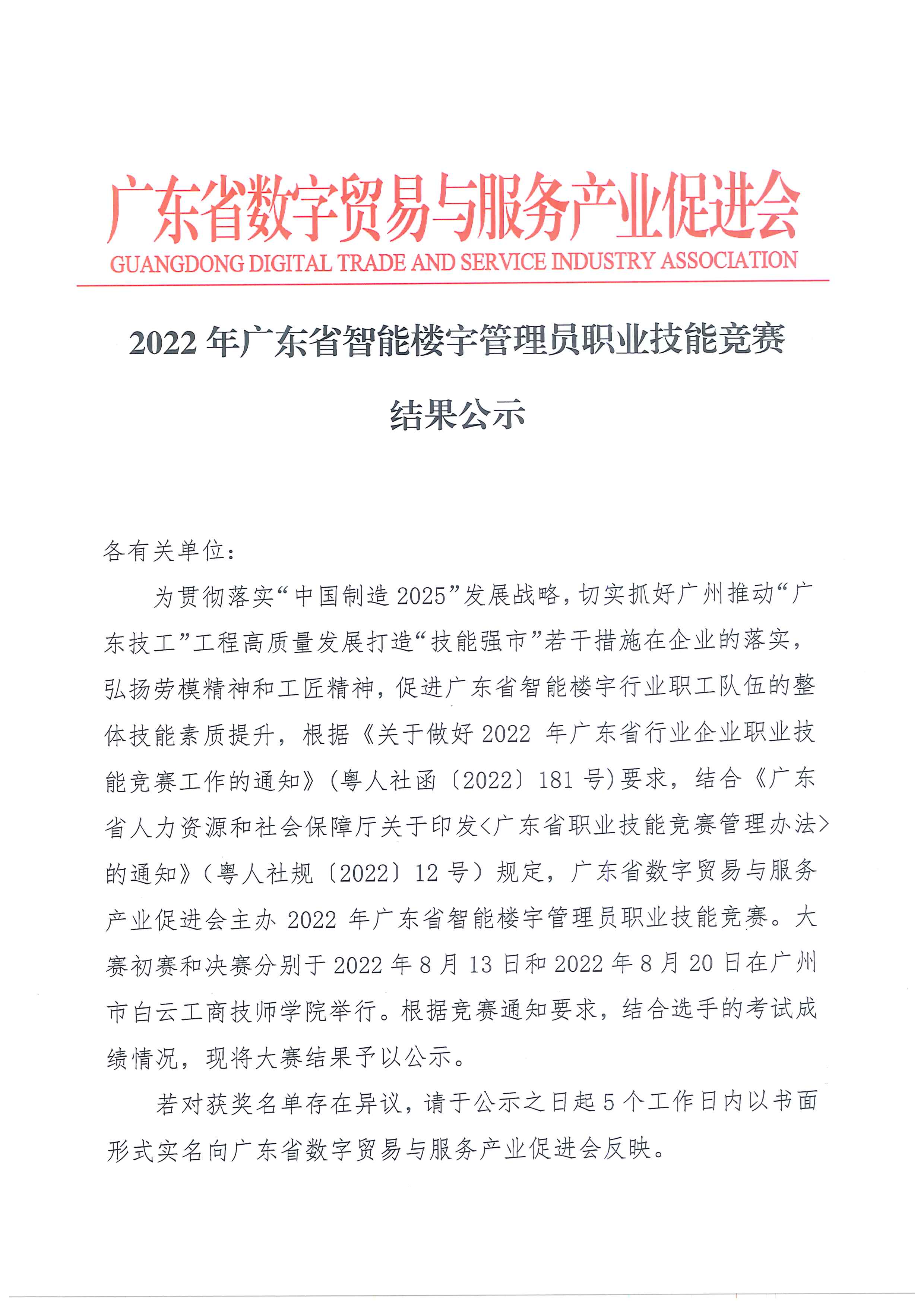 2022年广东省智能楼宇管理员职业技能竞赛结果公示.pdf